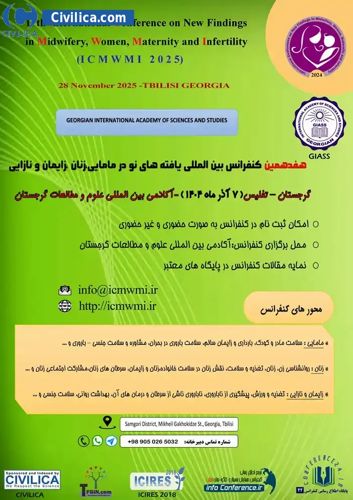 هفدهمین کنفرانس بین المللی یافته های نو در مامایی،زنان ،زایمان و نازایی در تاریخ ۷ آذر ۱۴۰۴ توسط ، آکادمی بین المللی علوم و مطالعات گرجستان برگزار خواهد شد.با توجه به اینکه این همایش به صورت رسمی برگزار می گردد، کلیه مقالات این کنفرانس در پایگاه سیویلیکا و نیز کنسرسیوم محتوای ملی نمایه خواهد شد و شما می توانید با اطمینان کامل، مقالات خود را در این همایش ارائه نموده و از امتیازات علمی ارائه مقاله کنفرانس با دریافت گواهی کنفرانس استفاده نمایید.