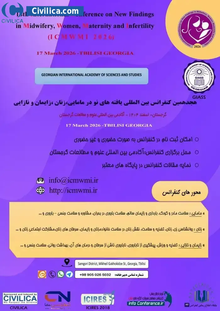 هجدهمین کنفرانس بین المللی یافته های نو در مامایی، زنان، زایمان و نازایی در تاریخ ۲۶ اسفند ۱۴۰۴ توسط ، آکادمی بین المللی علوم و مطالعات گرجستان برگزار خواهد شد.با توجه به اینکه این همایش به صورت رسمی برگزار می گردد، کلیه مقالات این کنفرانس در پایگاه سیویلیکا و نیز کنسرسیوم محتوای ملی نمایه خواهد شد و شما می توانید با اطمینان کامل، مقالات خود را در این همایش ارائه نموده و از امتیازات علمی ارائه مقاله کنفرانس با دریافت گواهی کنفرانس استفاده نمایید.