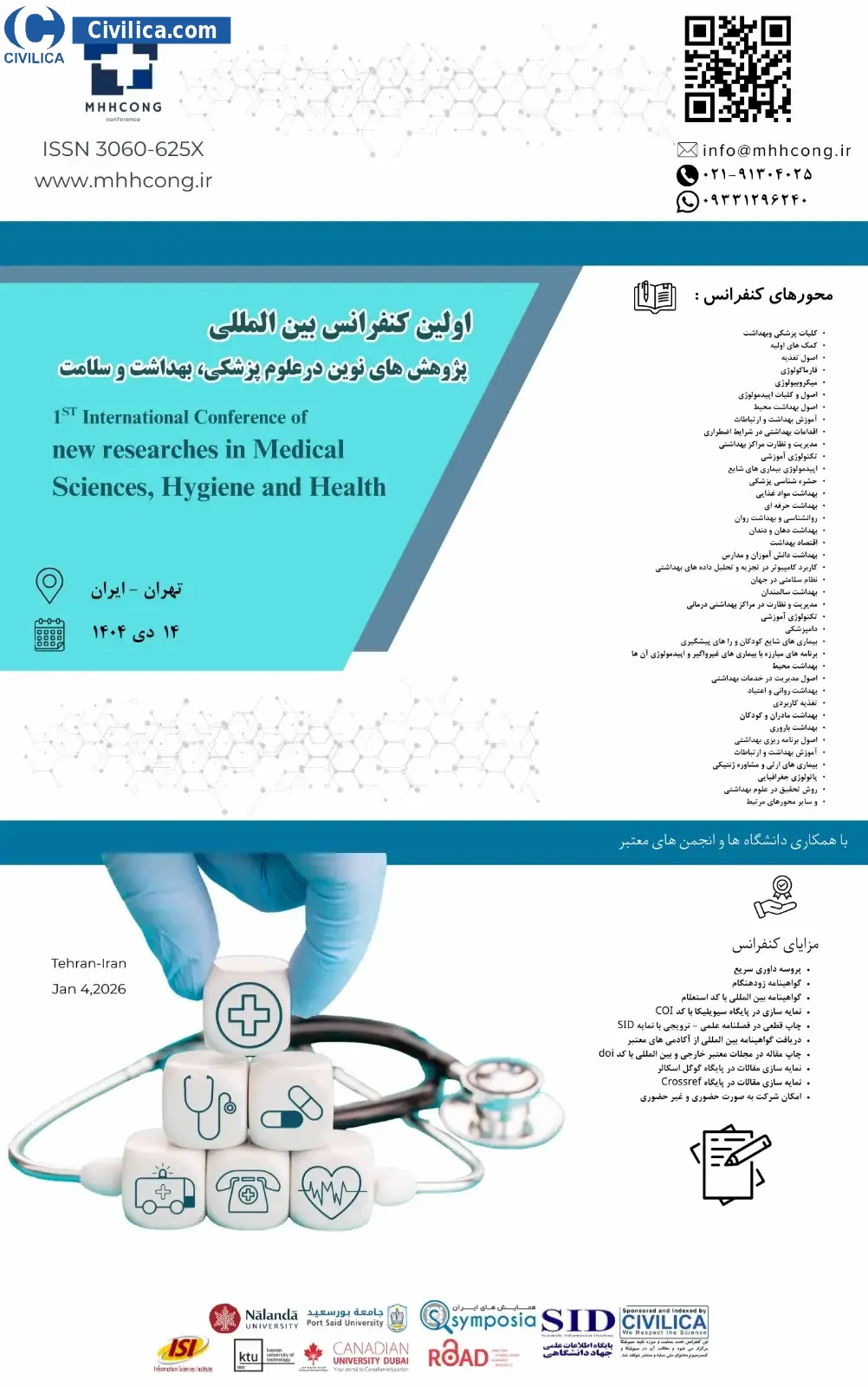 اولین کنفرانس بین المللی پژوهش های نوین درعلوم پزشکی، بهداشت و سلامت در تاریخ ۱۴ دی ۱۴۰۴ توسط ، همایش آروین البرز در شهر تهران برگزار خواهد شد.با توجه به اینکه این همایش به صورت رسمی برگزار می گردد، کلیه مقالات این کنفرانس در پایگاه سیویلیکا و نیز کنسرسیوم محتوای ملی نمایه خواهد شد و شما می توانید با اطمینان کامل، مقالات خود را در این همایش ارائه نموده و از امتیازات علمی ارائه مقاله کنفرانس با دریافت گواهی کنفرانس استفاده نمایید.