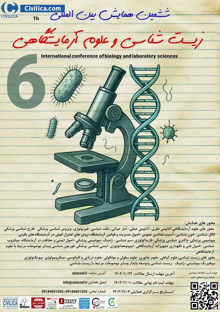 ششمین همایش بین المللی زیست شناسی و علوم آزمایشگاهی در تاریخ ۴ بهمن ۱۴۰۴ توسط ، دبیرخانه دائمی همایش در شهر همدان برگزار خواهد شد.با توجه به اینکه این همایش به صورت رسمی برگزار می گردد، کلیه مقالات این کنفرانس در پایگاه سیویلیکا و نیز کنسرسیوم محتوای ملی نمایه خواهد شد و شما می توانید با اطمینان کامل، مقالات خود را در این همایش ارائه نموده و از امتیازات علمی ارائه مقاله کنفرانس با دریافت گواهی کنفرانس استفاده نمایید.